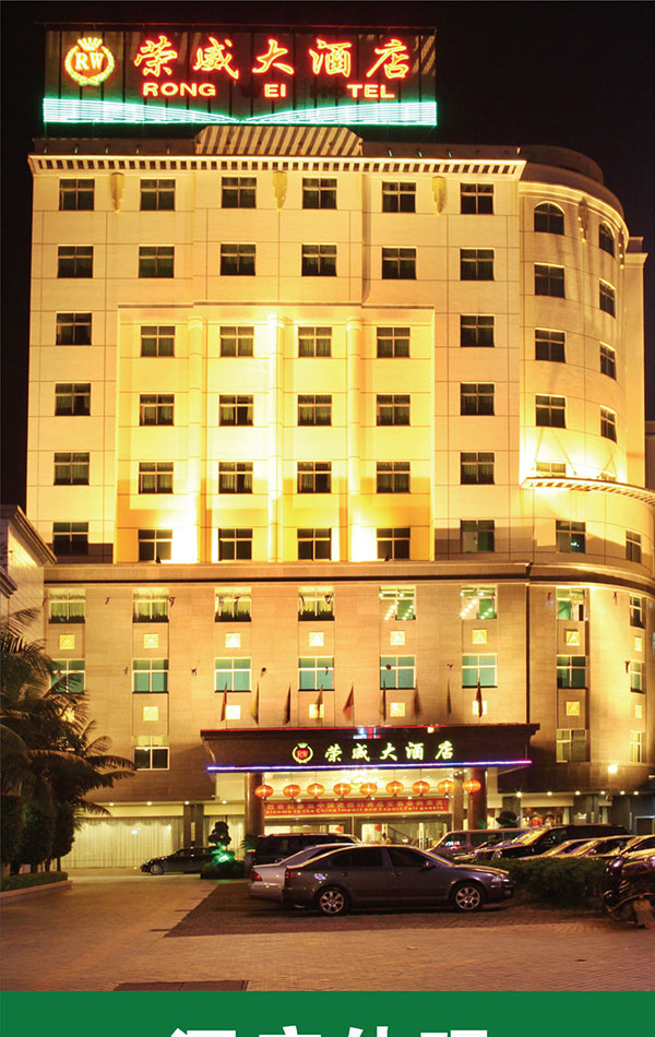 Located at the Yingbin Avenue, the central axis of the city, Rongwei Hotel is adjacent to Shiling International Leather City, Motor City and Diamond City, and it is only a 20-rninute bus ride journey to Guangzhou Baiyun International Airport. The hotel has an autonomous car parking. covering a total area of more than 12,000 square meters, the hotel features 110 spacious, clean and comfortable guest rooms, as well as restaurant, KTV nightclub, health center, conference hall, large banquet hall and so on. Rongwei Hotel is designed for businessmen who want to relax, recreate and hold parties.