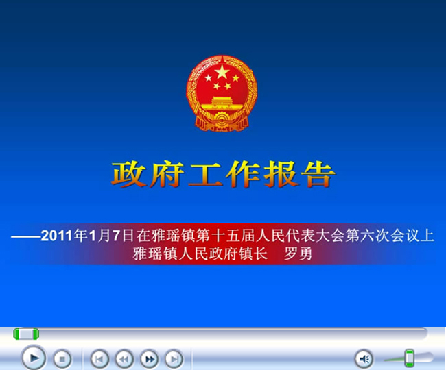 现在,我代表广州市花都区雅瑶镇人民政府,向大会作政府工作报告,请予审议,并请列席人员提出意见。