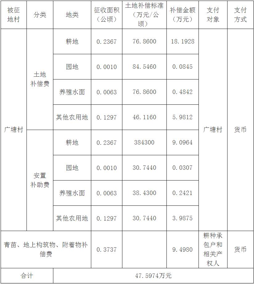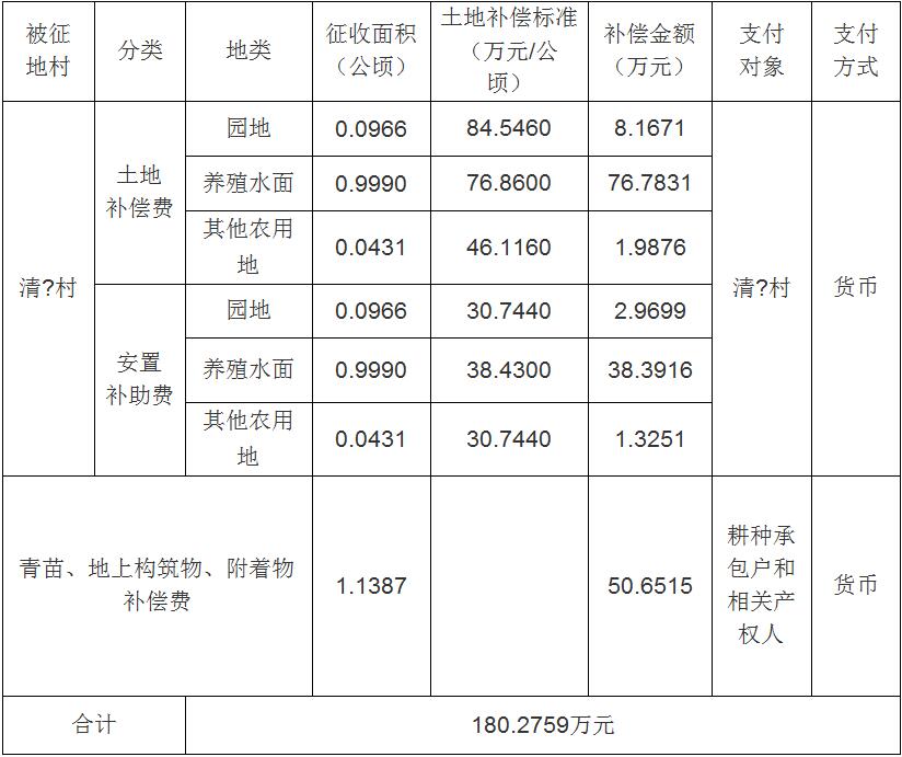 经省人民政府批准(粤国土资(建)字〔2015〕1013号文),需将广州市花都区新雅街清?村、广塘村属下的集体土地1.5124公顷(合22.686亩)征收为国有土地。现将经依法批准的《征收土地方案》和市人民政府批准的《征地补偿安置方案》内容以及有关事项公告如下: