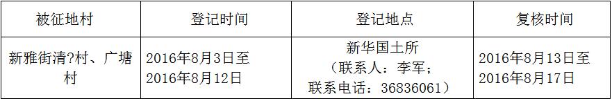 二、征收土地位置:广州市花都区新雅街清?村、广塘村(四至范围详见附图)。