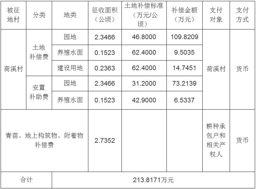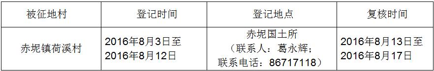 经省人民政府批准(粤国土资(建)字〔2016〕241号文),需将广州市花都区赤坭镇荷溪村属下的集体土地2.7352公顷(合41.0280亩)征收为国有土地。现将经依法批准的《征收土地方案》和市人民政府批准的《征地补偿安置方案》内容以及有关事项公告如下: