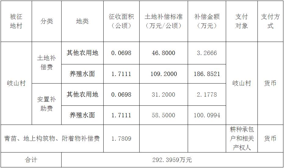 广州市花都区秀全街岐山村,集体用地合计1.7809公顷(26.71亩),交通用地0.0376公顷(0.56亩),水域及水利设施用地1.7433公顷(26.15亩)。