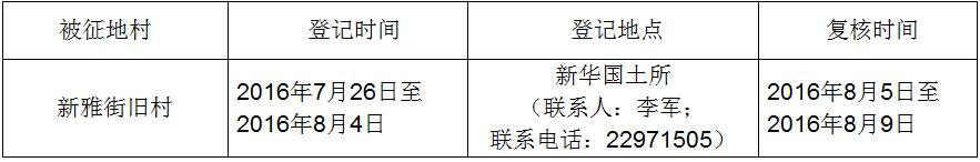 经省人民政府批准(粤国土资(建)字[ 2016]251号文),需将广州市花都区新雅街旧村属下的集体土地2.3472公顷(合35.21亩)征收为国有土地。现将经依法批准的《征收土地方案》和市人民政府批准的《征地补偿安置方案》内容和有关事项公告如下: