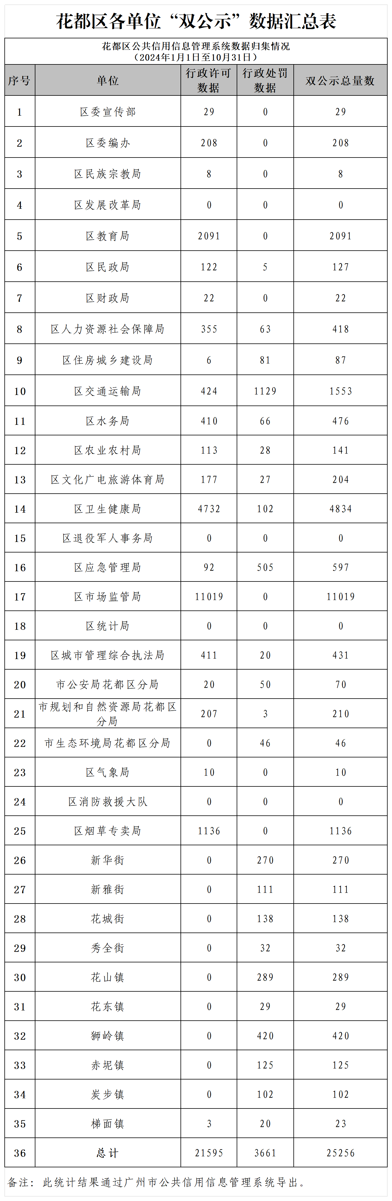 信用信息双公示_花都区2024年10月各单位“双公示”数据汇总表