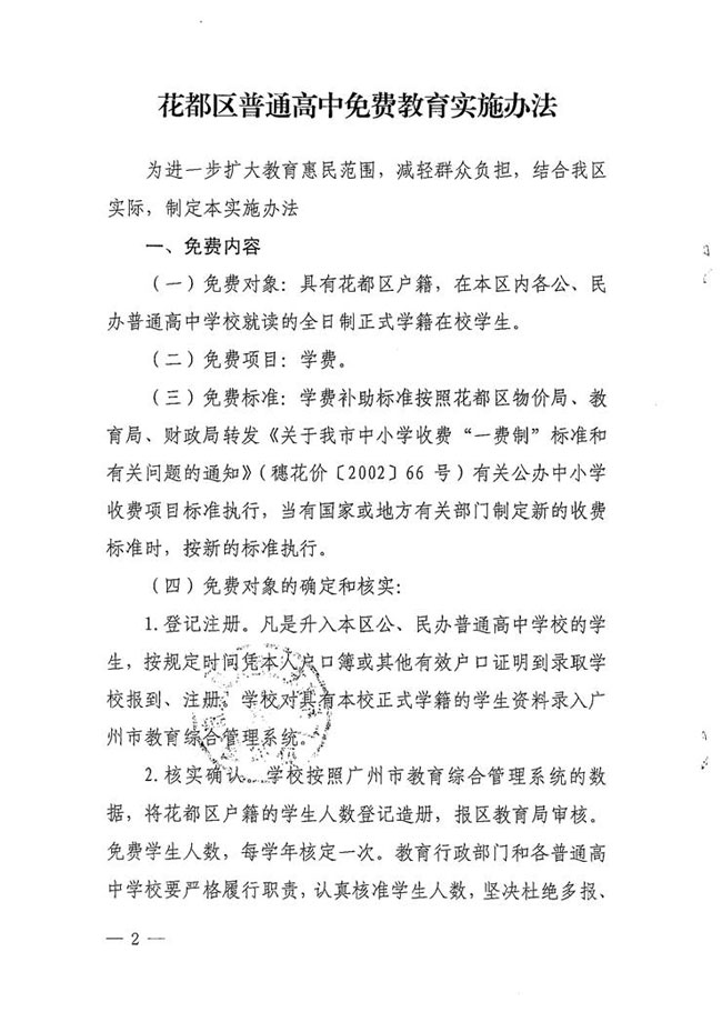 黄色直播 办公室关于印发花都区普通高中免费教育实施办法的通知【花府办[2016]1号】