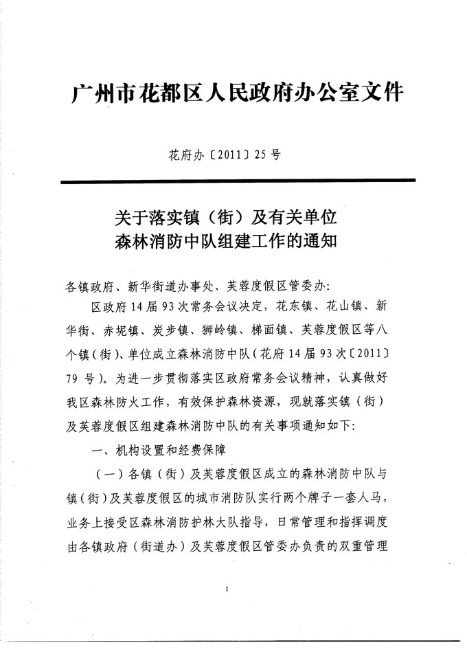 关于落实镇(街)及有关单位森林消防中队组建工作的通知 【花府办[2011]25号】