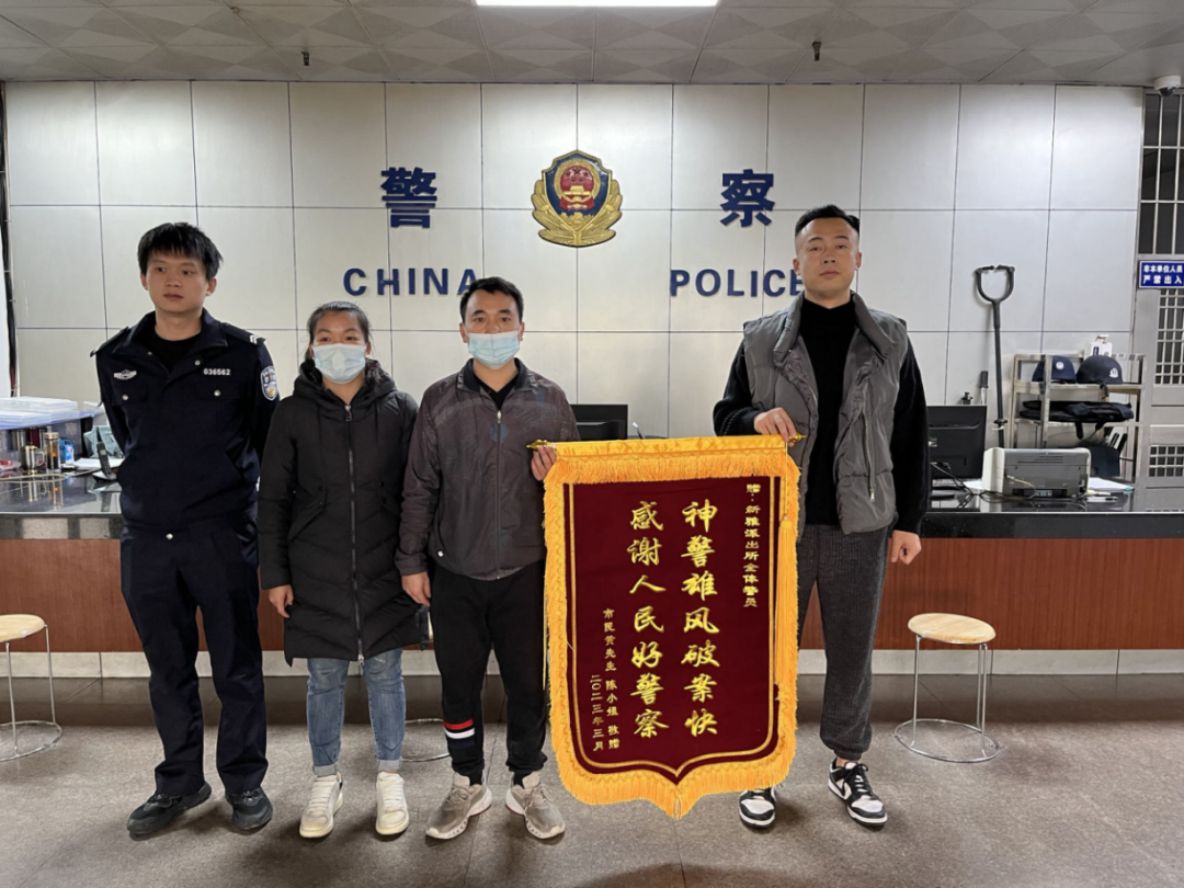 徐智超(右一)快速破案获群众赠送锦旗