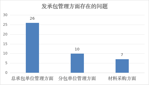 2.分包单位管理方面:共发现10个问题。其中5个项目的分包单位现场管理人员未在现场进行管理或现场未提供分包单位项目经理的劳动合同、社保证明、工资发放凭证等资料;2个项目未能提供发承包合同或合同未盖公章、未签署时间;2个项目的劳务分包单位无劳务派遣资质,与分包合同不符;1个项目提供的专业分包单位资质证书及部分人员证书过期。